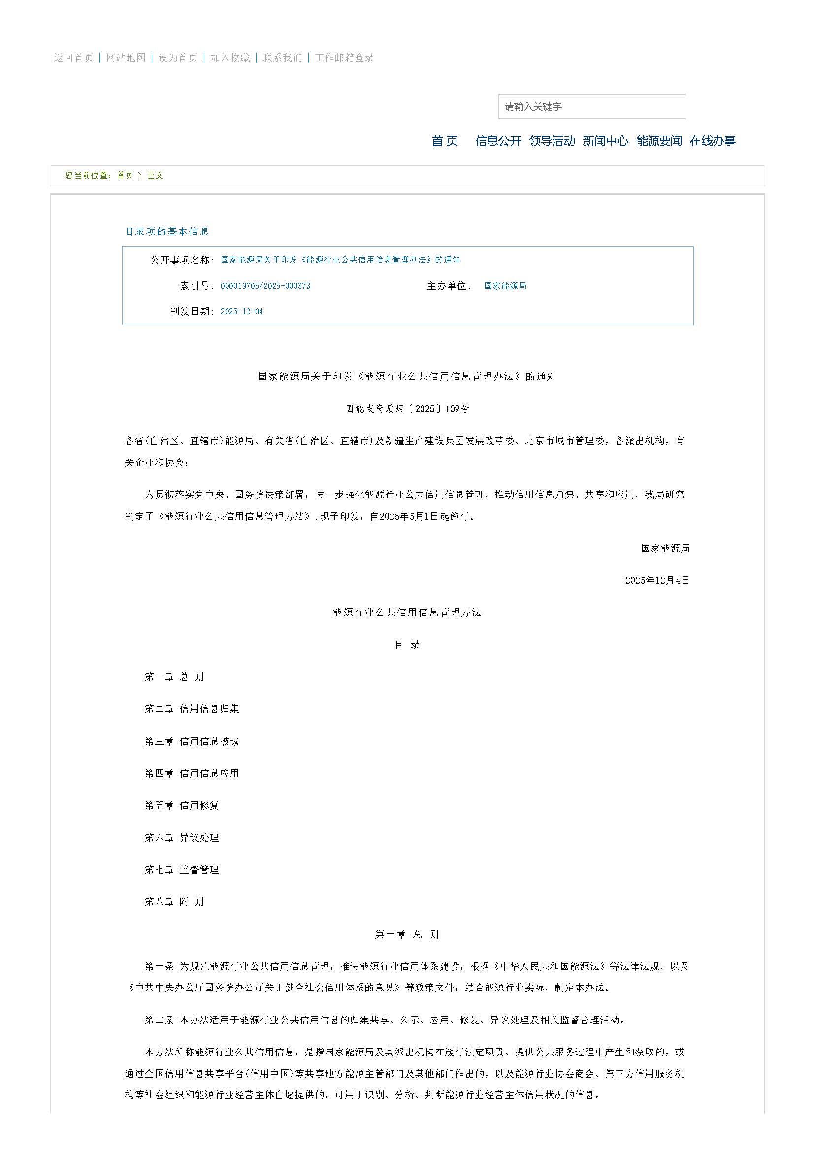 国家能源局关于印发《能源行业公共信用信息管理办法》的通知