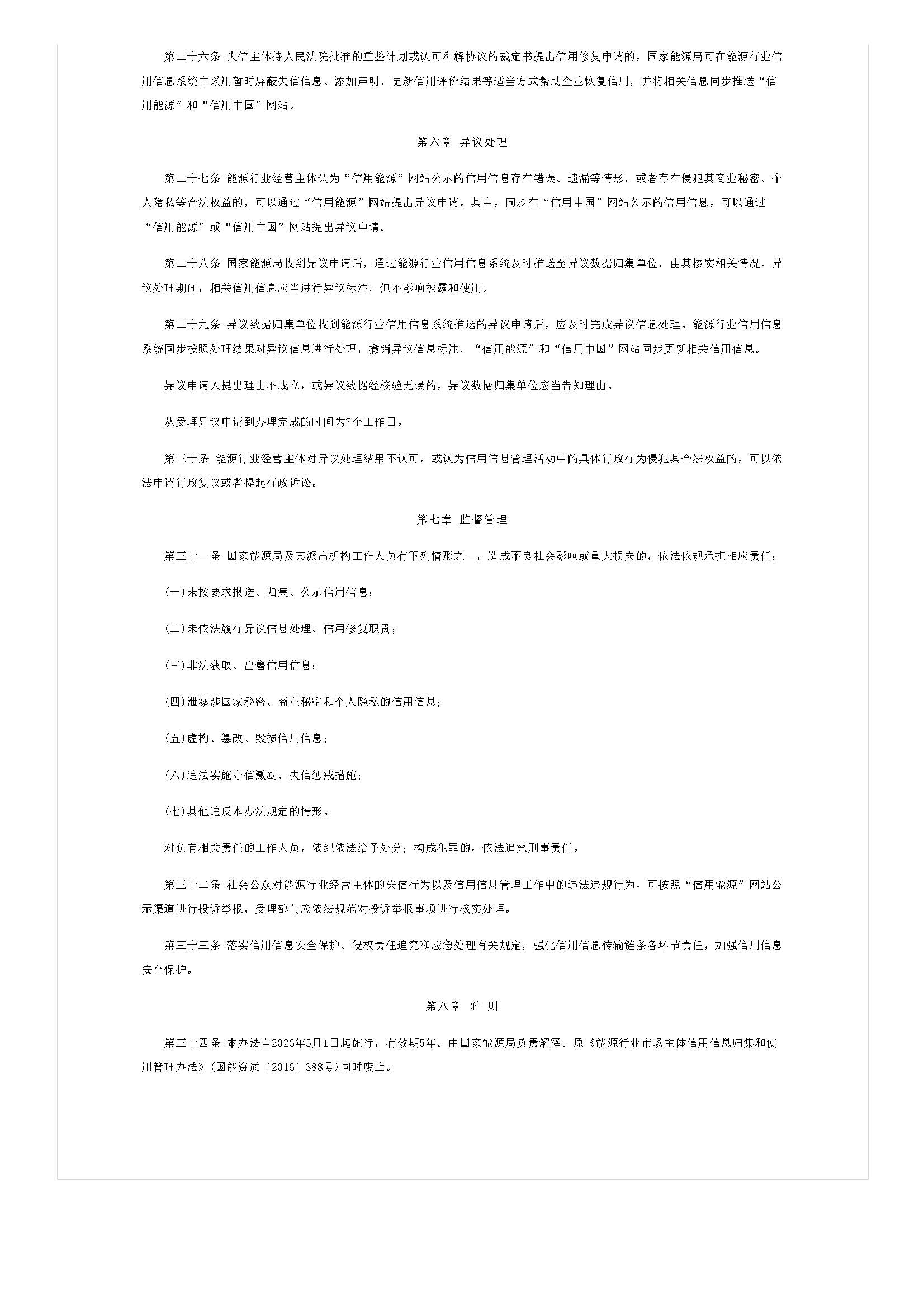 国家能源局关于印发《能源行业公共信用信息管理办法》的通知
