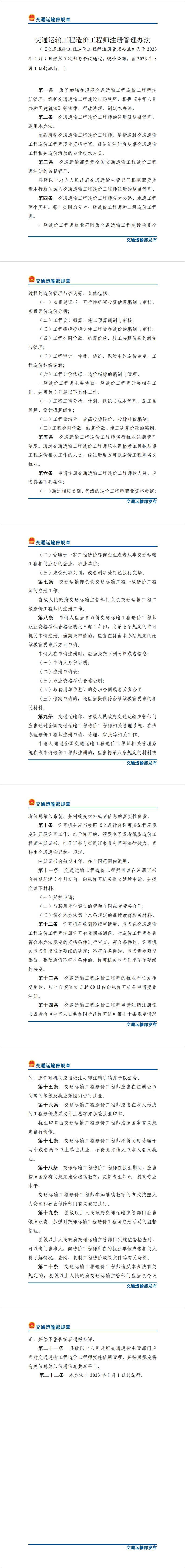 交通运输工程造价工程师注册管理办法